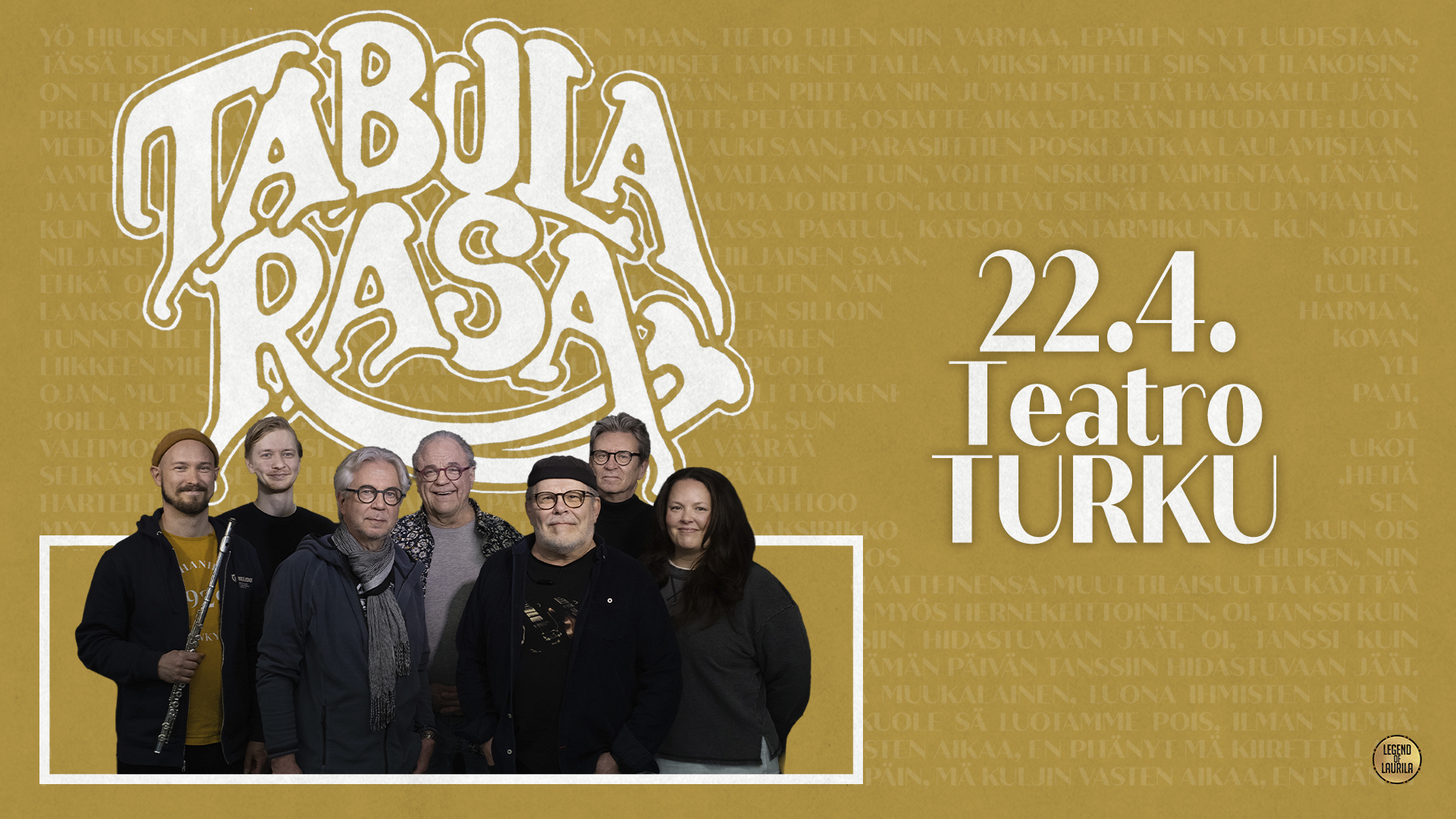 Suomiprogen klassikkoyhtye Tabula Rasa palaa keikkalavoille! Tarunhohtoinen orkesteri nähdään Turussa Logomon Teatro-salissa keskiviikkona 22.4.2026.